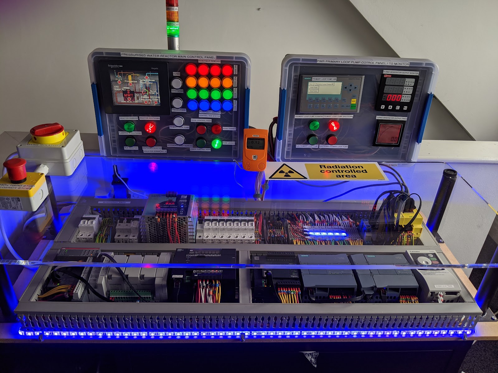 - For the purposes of experimentation, we created a “Nuclear Reactor on a Bench” research platform, to simulate critical connected systems within nuclear facilities to create a safe hardware testbed in which to explore cybersecurity risks in connected energy environments. This work, conducted by Barden Winkle, involved building an initial SCADA research platform using a number of different PLC manufacturers based on a real world application including HMIs. The main component manufacturers include Siemens, Schneider Electric, OMRON, Allen-Bradley, ABB and Mitsubishi (drive controller), and the platform makes use of standard industrial protocols for further research (i.e. ProfiNet, MODBUS, EtherNet/IP, etc), and provides a platform to write detailed testing methodologies.