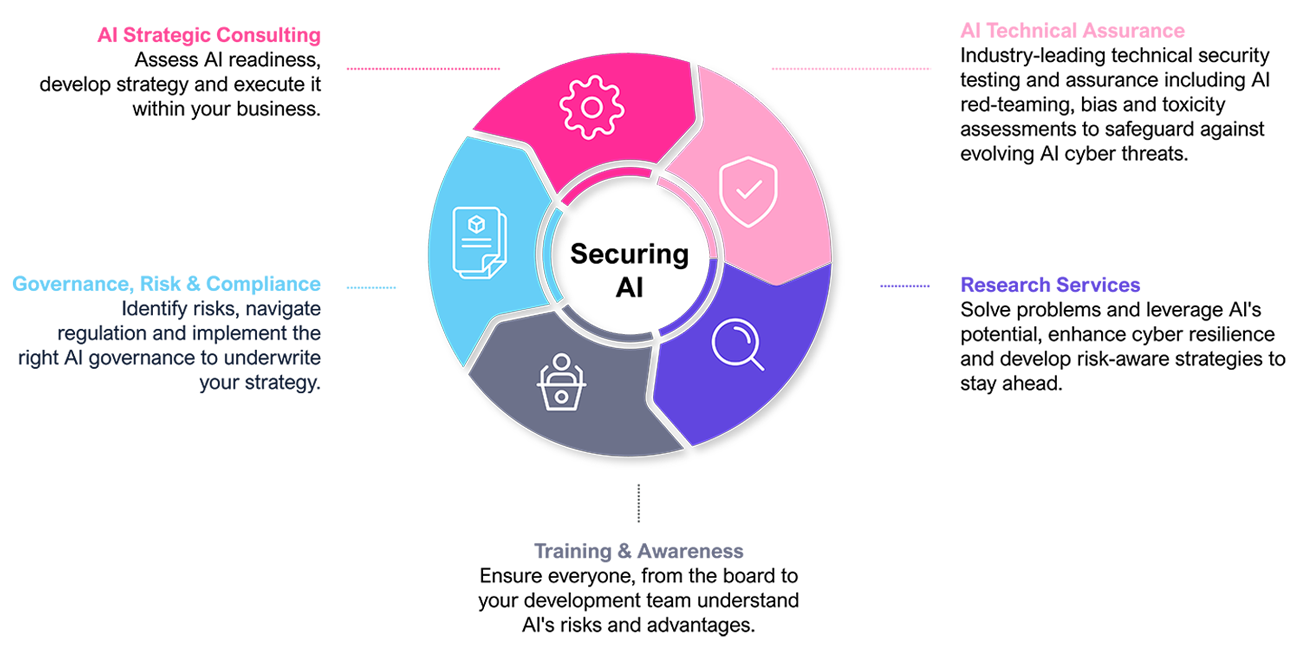 Our clients receive the breadth of our security consulting services and the support they need when getting to grips with what AI means for them — regardless of size, industry, or level of maturity with adoption and competency.