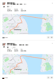 Screenshot of a Strava profile; depicts someone’s commute via bike and reveals both their home and office locations