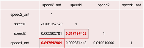 A correlation coefficient is a numerical measure of the degree of association between two continuous variables. The correlation coefficients of all the speeds (correlation matrix) can be calculated by using, for example, Microsoft Excel [7].