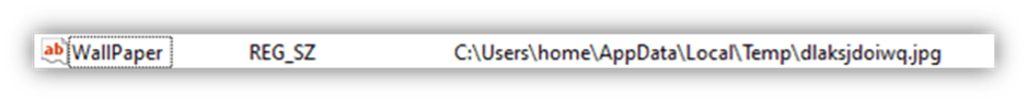 The wallpaper is modified to display the dropped JPG through the registry located at HKCUControl PanelDesktopWallpaper, setting the path to the JPG as seen below in Figure 4.