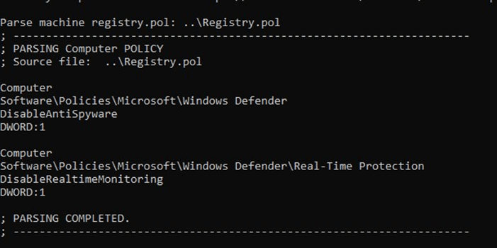 During the intrusion, steps were taken by the threat actor in order to prevent interference from anti-virus. The threat actor was observed using two main techniques to disable Windows Defender.
